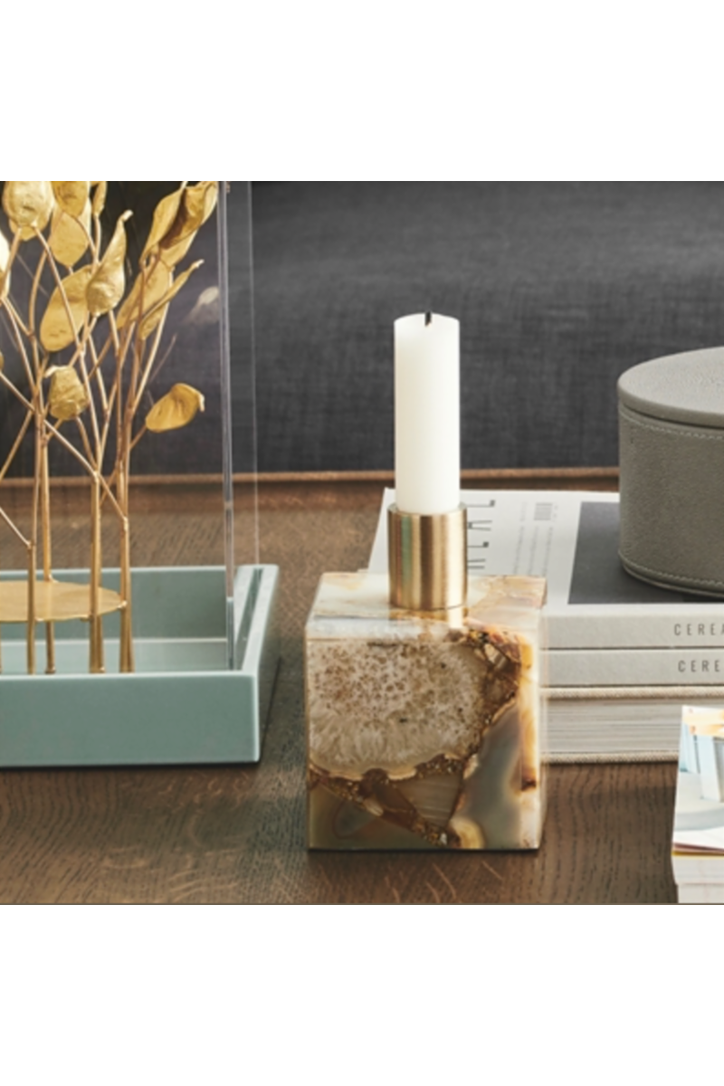 Nydelig lysestake i Agat stein. Skapt av naturen, og sammensatt av hånd i de flotteste fargene.