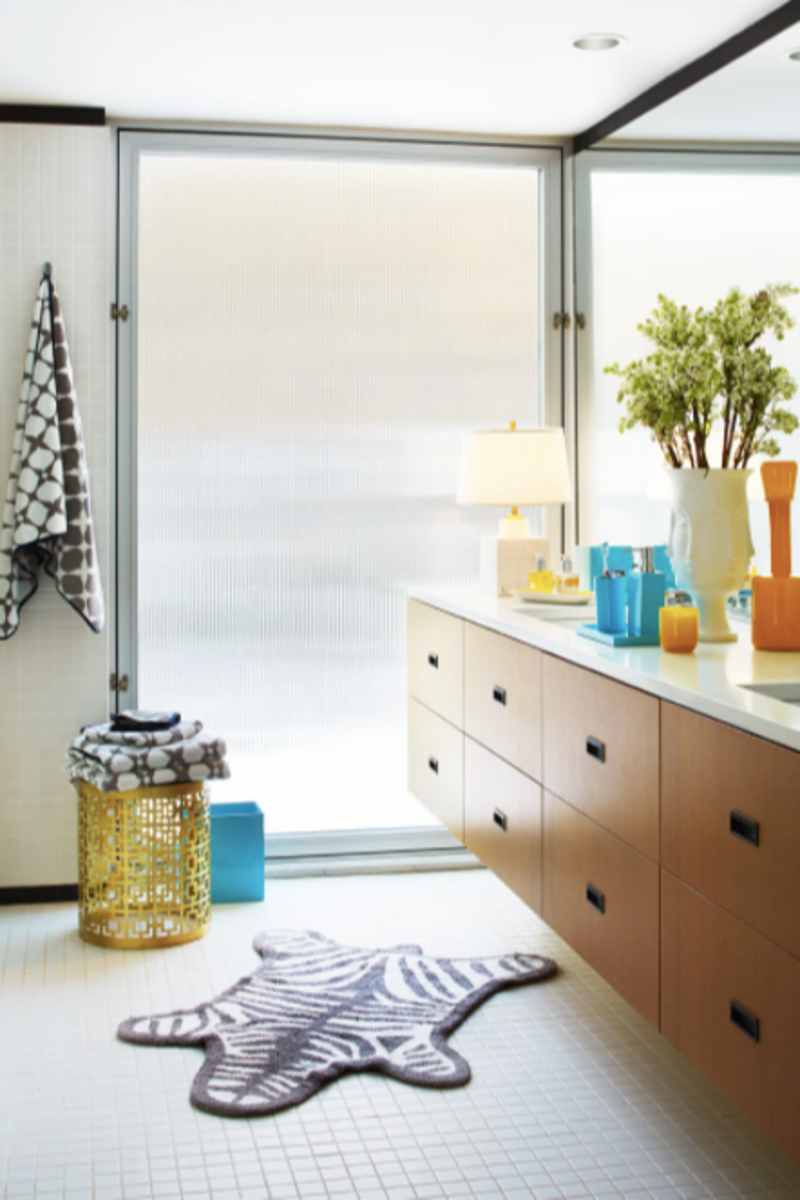 Unik badematte fra Jonathan Adler i sort, selges også i grå og navy. Passer både på badegulvet og som et spennende teppe på barnerommet.