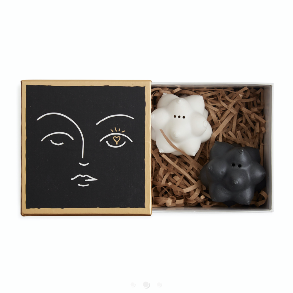 Lekre og iøynefallende salt- og pepperbøsser i porselen som kommer i en flott gaveeske.