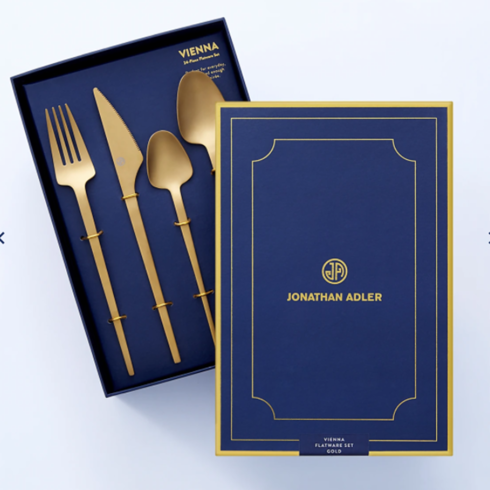 Nydelig bestikk i gull fra Jonathan Adler, selges i en fin eske. Selges også i sølv.