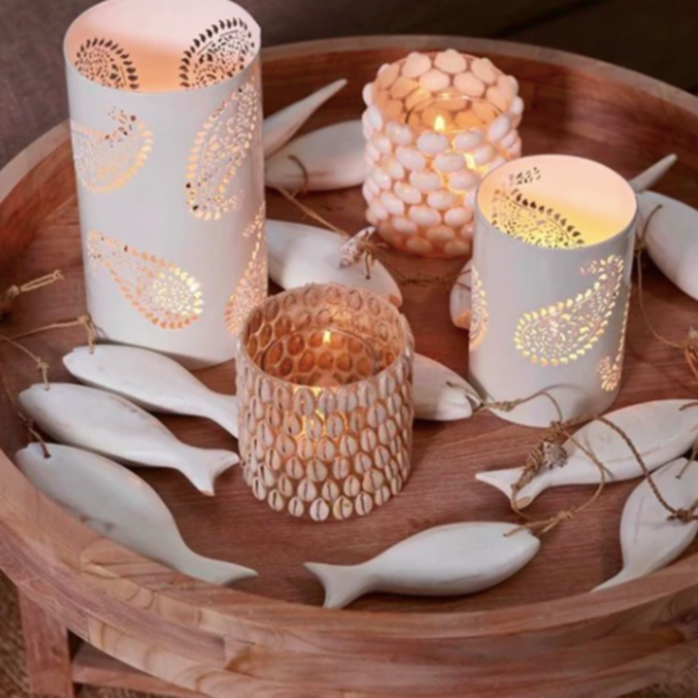 LAMA Telysholder glass/skjell assorterte Natur