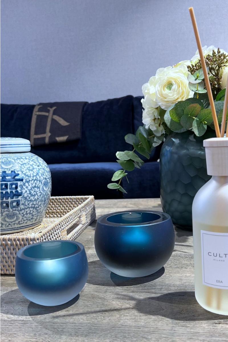 Nydelig telysholder i farget matt glass - gir et vakkert lys!