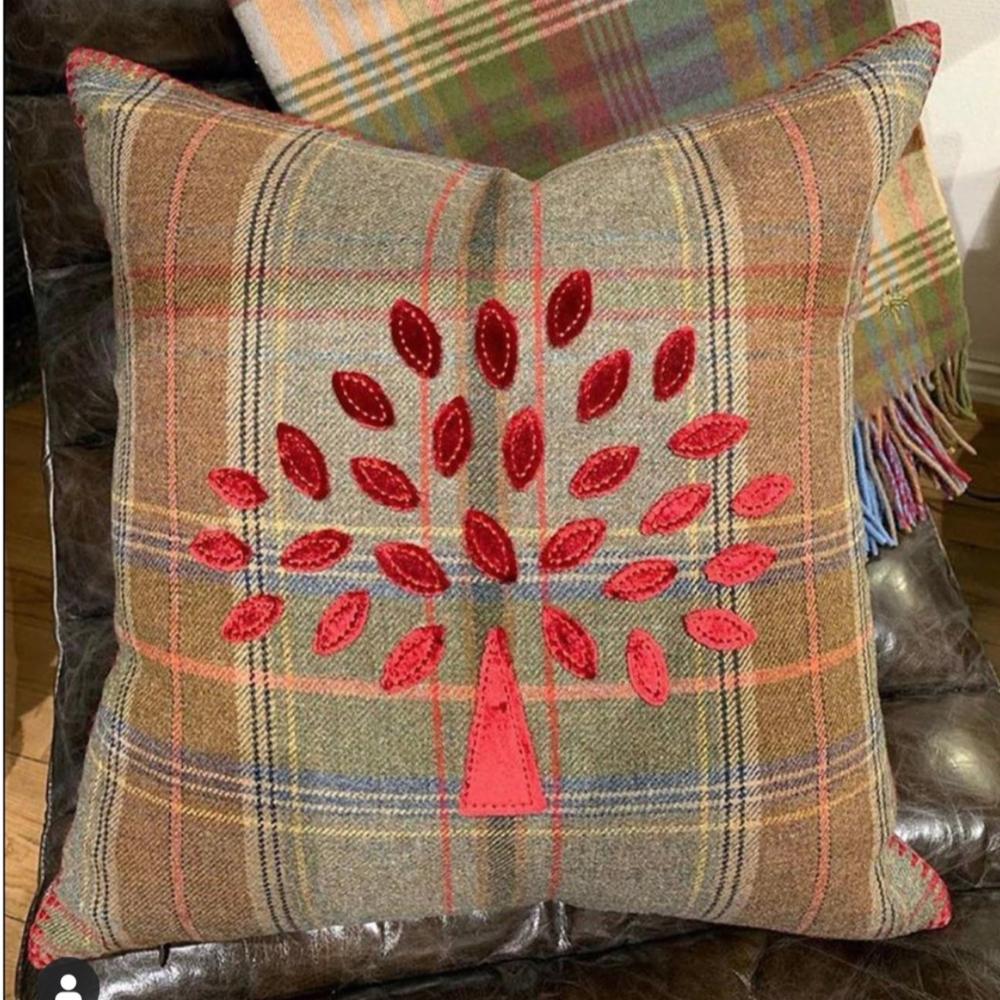 Nydelig Mulberry pute med det tradisjonelle treet i rødt.